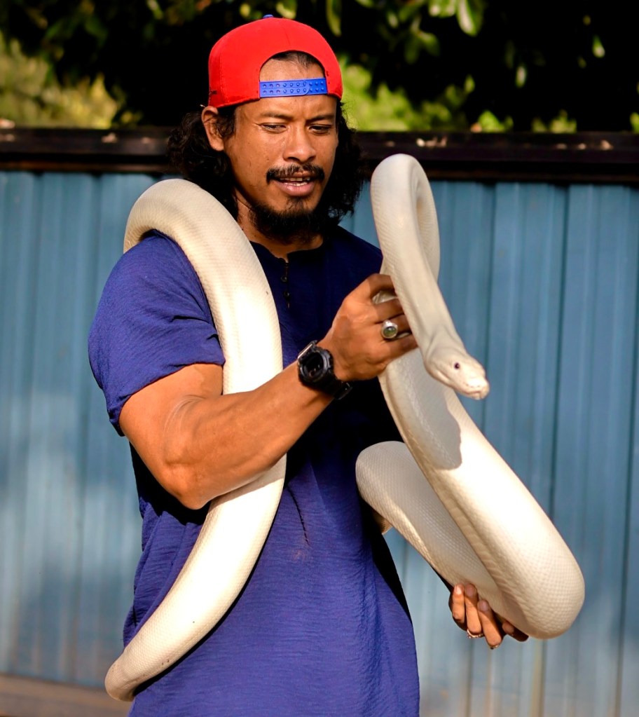 species dalam keluarga ular sawa batik cuma berbeza genetik..yang abe dukung ni jantan..jantan size lebih kecil dari betina..kenapa abe suka haiwan exotik teruma skali ular sawa..